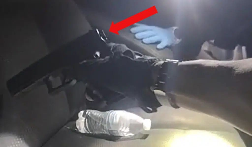 During the stop, the officer smelled burnt marijuana and conducted a probable-cause search of the vehicle. A Glock 31 handgun equipped with an illegal modification commonly known as a “switch” — which converts a semi-automatic firearm into a fully automatic weapon — was found beneath the front passenger seat. Testing later identified Hargrove’s DNA on the firearm.